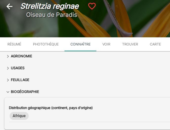 Ce nouveau champ "Distribution géographique", vous pouvez donc le découvrir dans la rubrique "Biogéographie" des fiches plantes.